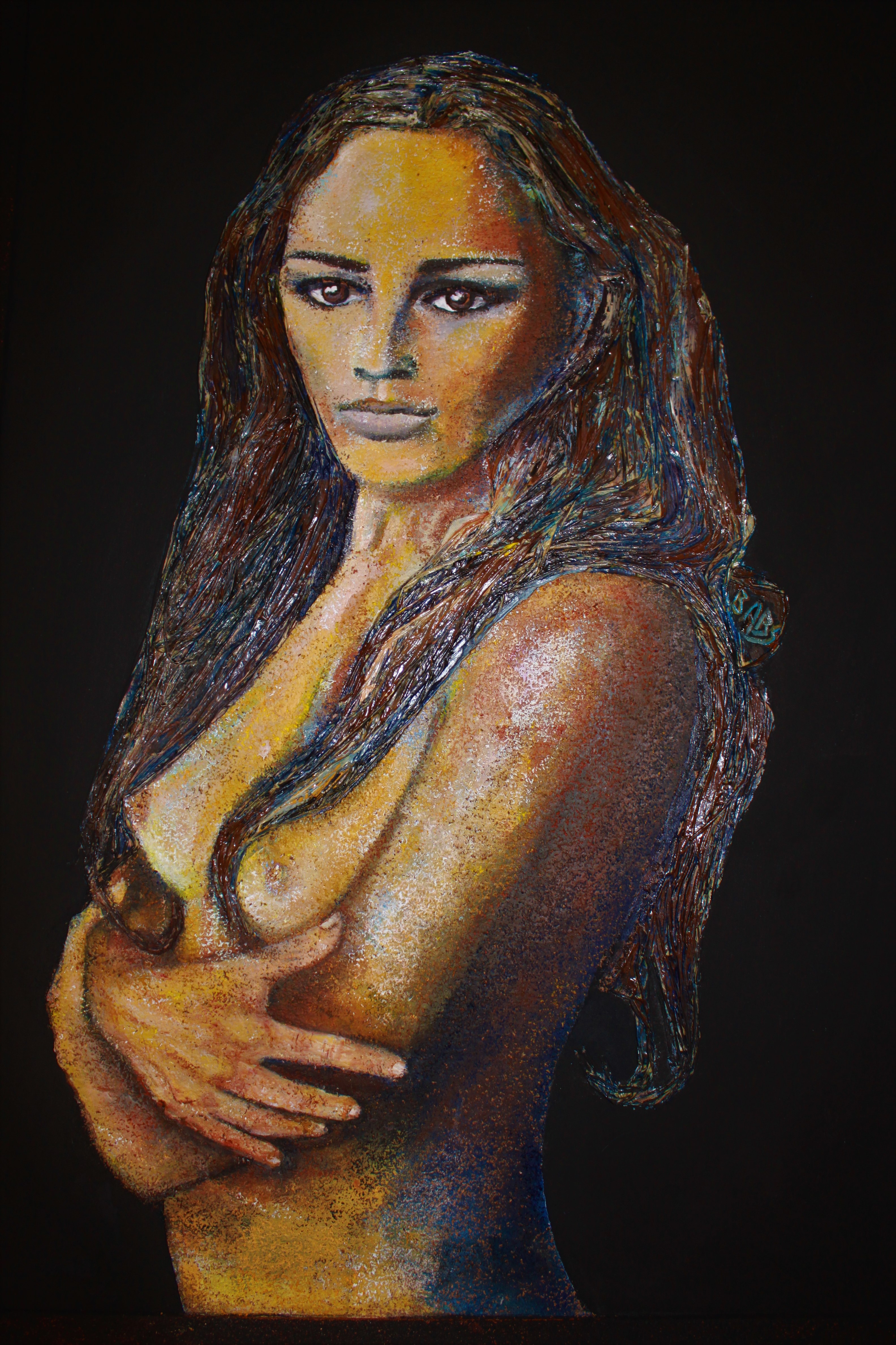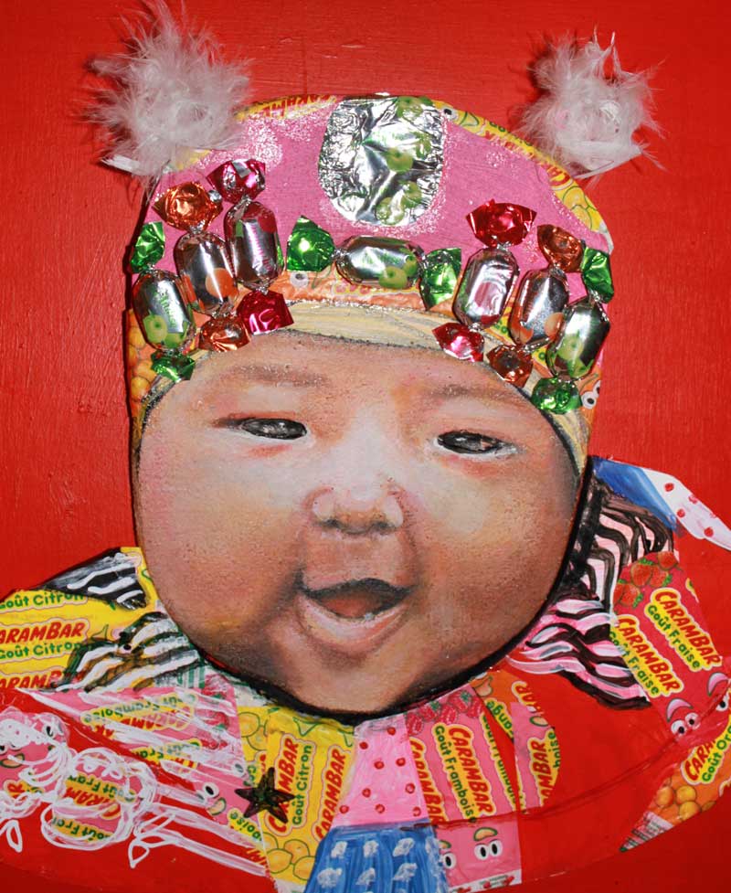 L’Humain et la Nature m’inspirent portraits et paysages dans lesquels sont intégrés des matériaux détournés pour mieux témoigner sur les gaspillages et excès d’un monde en pleine mutation.