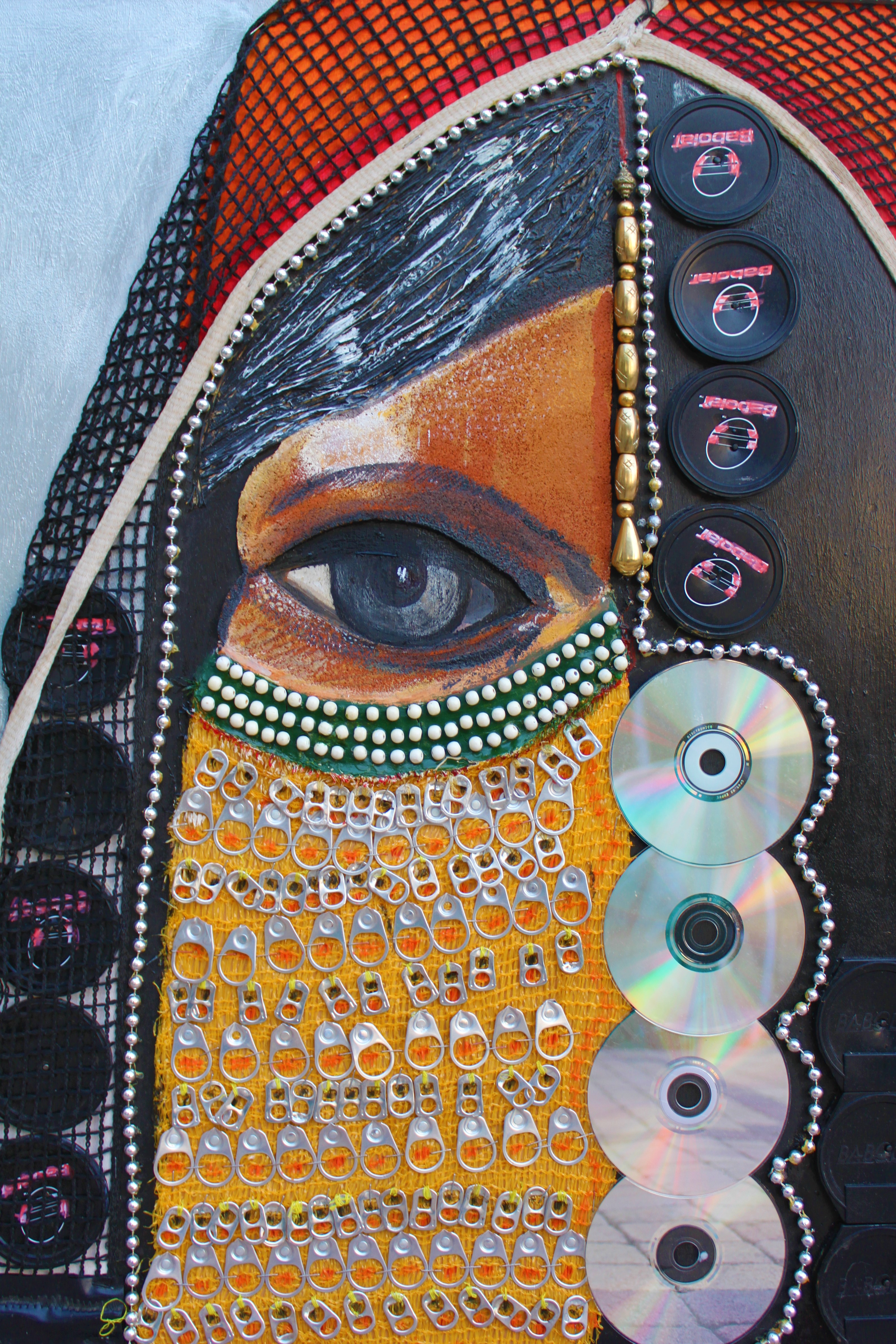 Je cherche à dérouter notre attente, à déjouer notre perception visuelle en offrant des expériences sensorielles avec mes peintures bas-relief. Pièges visuels qui font croire, au premier abord, à une réalisation classique et figurative. Le spectateur sera surpris de découvrir cet assemblage original et esthétique, fait à partir de CD ROMS, boites de conserves, sacs de pommes de terre, selle de vélo, fils d’étendages, emballages de médicaments etc…